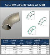 CODO 90º SOLDABLE CEDULA 40 T-304