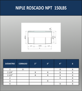NIPLE NPT ROSCADO 150 Lbs T-304
