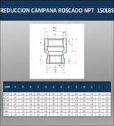 REDUCCION CAMPANA ROSCADA NPT 150 LBS T-304