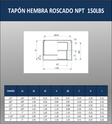 TAPON HEMBRA ROSCADO NPT 150 LBS
