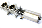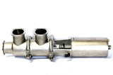 VALVULA NEUMÁTICA DIVERSORA TRES VIAS CLAMP T-304. Las válvulas son de suma importancia para cualquier proceso higiénico. Incluso pequeñas diferencias en su operación hacen una importante diferencia. Las válvulas diversoras neumáticas de 3 vías vienen con actuador de aire-resorte o aire-aire y, bajo solicitud, cuentan con cabeza inteligente; son utilizadas para regular y desviar flujos de líquidos.
